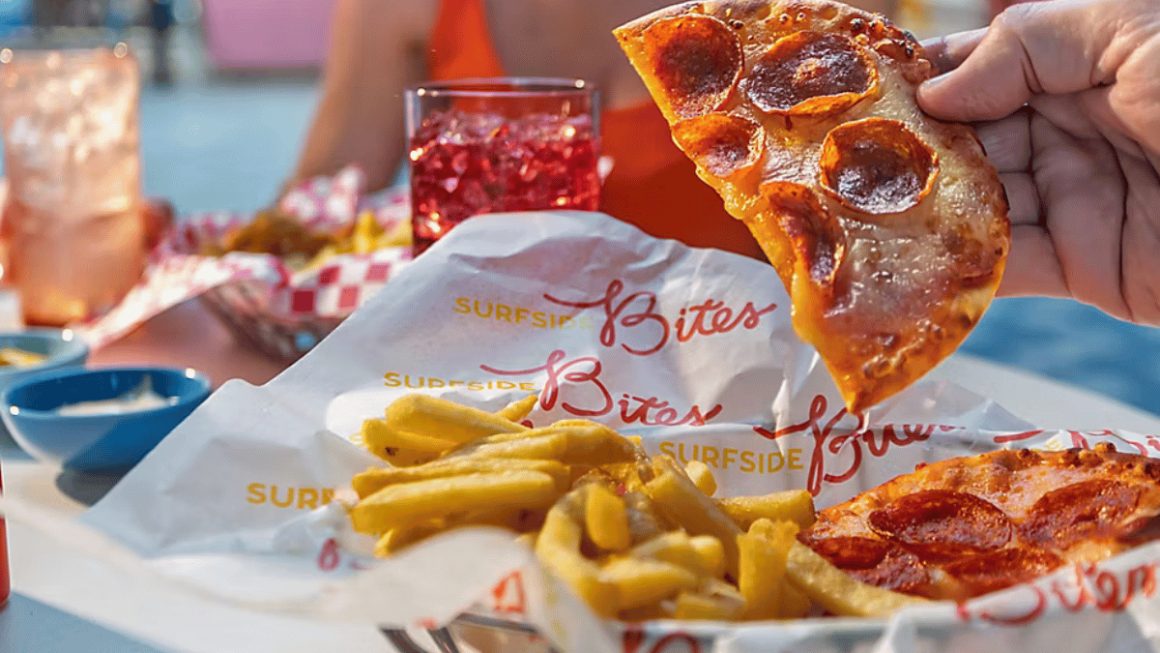 O Surfside Eatery é um restaurante pensado para famílias, localizado próximo às áreas de lazer infantil do navio. O espaço funciona em estilo buffet, oferecendo café da manhã e almoço com diversas opções que agradam principalmente ao público mais jovem.