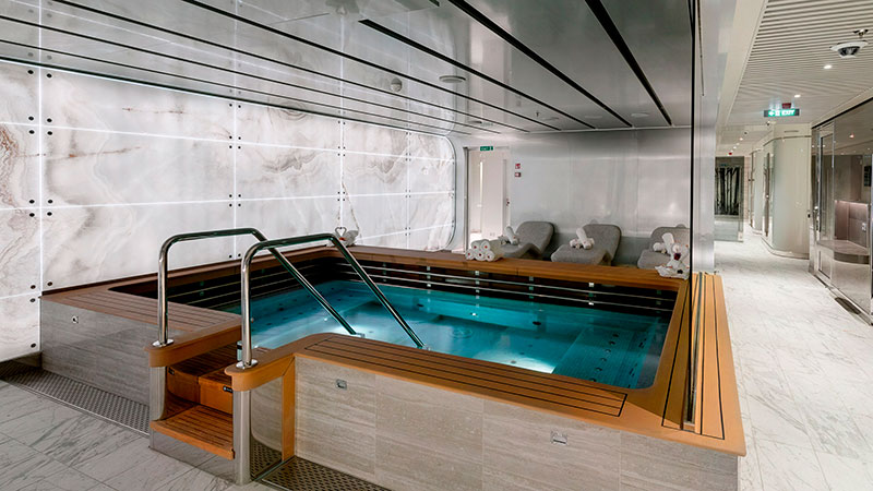 Hóspedes da MSC Yacht Club têm acesso gratuito à suíte termal do spa durante todo o cruzeiro. Essa área exclusiva possui sauna, banho turco e hidromassagem, e está disponível nos navios MSC Meraviglia, MSC Seaside, MSC Seaview e MSC Bellissima.