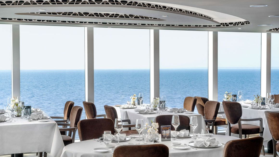 Os nomes dos restaurantes variam de acordo com com o navio, mas todos oferecem sofisticados menus a la carte – a qualquer hora do dia e também no lounge e na piscina do Yacht Club. Além disso, os hóspedes podem pedir as refeições e lanches nas suítes.