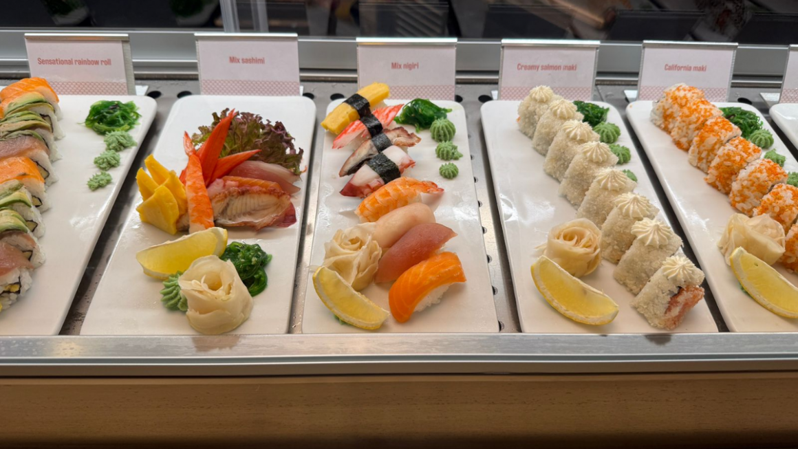 Nesse formato, os hóspedes podem continuar pedindo diferentes tipos de sushi durante a refeição. As bebidas não estão incluídas.