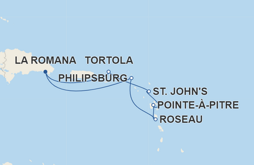 • Duas opções de itinerário partindo de La Romana, com paradas em destinos paradisíacos como Ocho Rios, Amber Cove, Samaná, Ilha Catalina, Ilhas Virgens Britânicas, Bridgetown, Point-à-Pitre, St. John’s, Antígua, Tortola e outros;