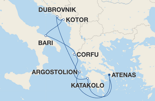 Atenas · Cefalonia · Dubrovnik · Kotor · Bari · Corfu · Katakolo · Atenas