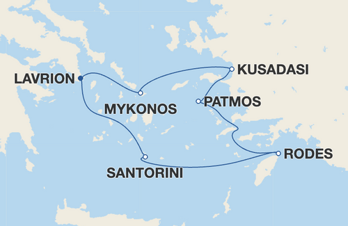 Lavrion · Mykonos · Kusadasi · Patmos · Rodas · Creta · Santorini · Lavrion