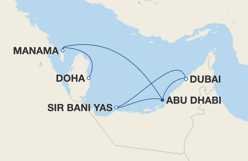 Embarque: Abu Dhabi, Emirados Árabes Desembarque: Doha, Catar