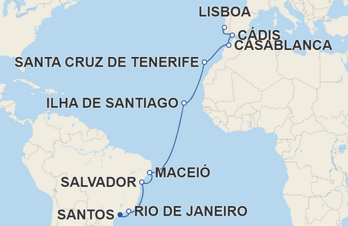 Roteiro: Rio de Janeiro, Maceió, Santa Cruz de Tenerife, Gibraltar, Alicante