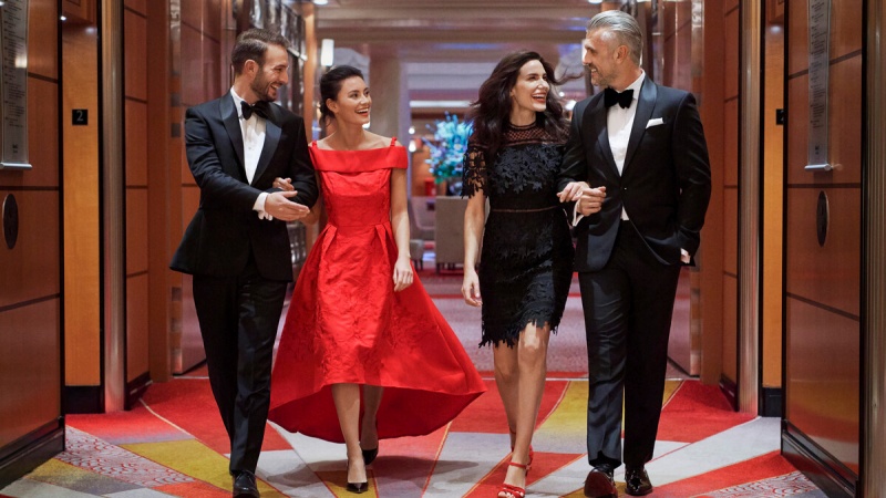 Um dos diferenciais da Cunard é o código de vestimenta a bordo. Dessa forma, todas as noites, a partir das 18h, somente traje formal é permitido nos navios. Por isso, é necessário uso, por exemplo, de smoking, terno escuro ou paletó com gravata. Somente em algumas áreas do navio são permitidas roupas mais informais como terno, paletó com gravata opcional, saia ou vestido. Igualmente, nos cruzeiros com duração de 7 noites ou mais, quando são realizadas duas ou três Noites de Gala, o uso de trajes formais também é obrigatório.