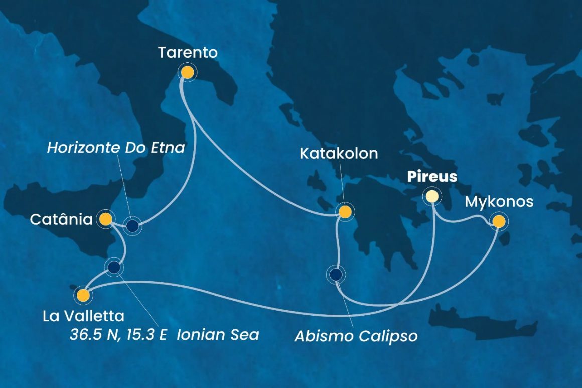 O benefício também está disponível em itinerários selecionados de 7 noites a bordo do Costa Fascinosa, com embarque em Atenas entre junho e setembro de 2025. Nesses cruzeiros, os hóspedes tem a chance de conhecer as belezas naturais e históricas da Grécia, da Itália e de Malta, visitando Mykonos, La Valetta, Catânia, Tarento e Argostoli ou Katakolon.