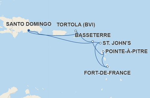 Roteiro: Fort-de-France, Pointe-à-Pitre, Basseterre, St. John’s, Tortola