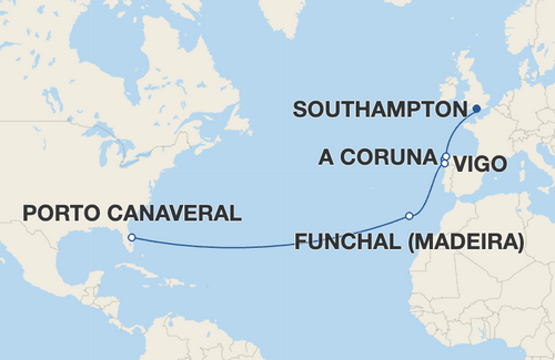 Além da manutenção técnica e do trabalho de classe, o navio com capacidade para 2.500 hóspedes deverá passar por atualizações nas áreas públicas e cabines antes de embarcar em uma travessia transatlântica de volta à América do Norte. A viagem de reposicionamento de 13 noites parte de Southampton no início de novembro e inclui visitas a destinos na Espanha e Portugal.