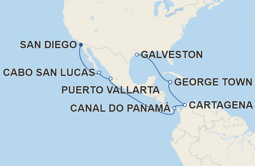 Roteiro: Cabo San Lucas, Puerto Vallarta, Canal do Panamá, Cartagena, George Town (Cayman)