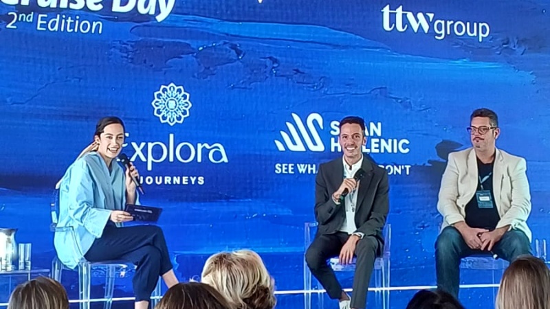 Em seguida, uma conversa sobre experiências de bem-estar em cruzeiros de luxo foi conduzida por Virgínia Gutierre (Product Director da TTWGroup), com os convidados Flávio Corrêa (Explora Journeys) e Edi Guerreiro (Swan Hellenic). “Ouvimos mais de 20 mil viajantes para elaborar o projeto da Explora”, explicou Flávio Corrêa, Business Relationship Manager da Explora Journeys, companhia marítima que estreou seu primeiro navio em agosto de 2023. No conceito de Ocean Wellness, prioriza a bordo as atividades e convivência em áreas externas, trazendo também um dos maiores spas em alto mar, com cerca de 700 metros quadrados de área.