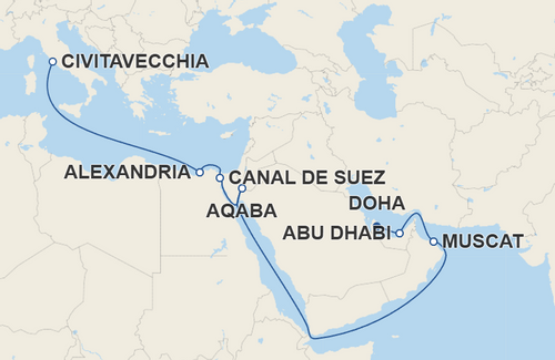 Roteiro: Abu Dhabi, Mascate (Muscat), Aqaba, Canal de Suez, Alexandria