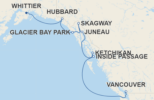 Roteiro: Hubbard, Glacier Bay Park, Skagway, Juneau, Ketchikan, Inside Passage