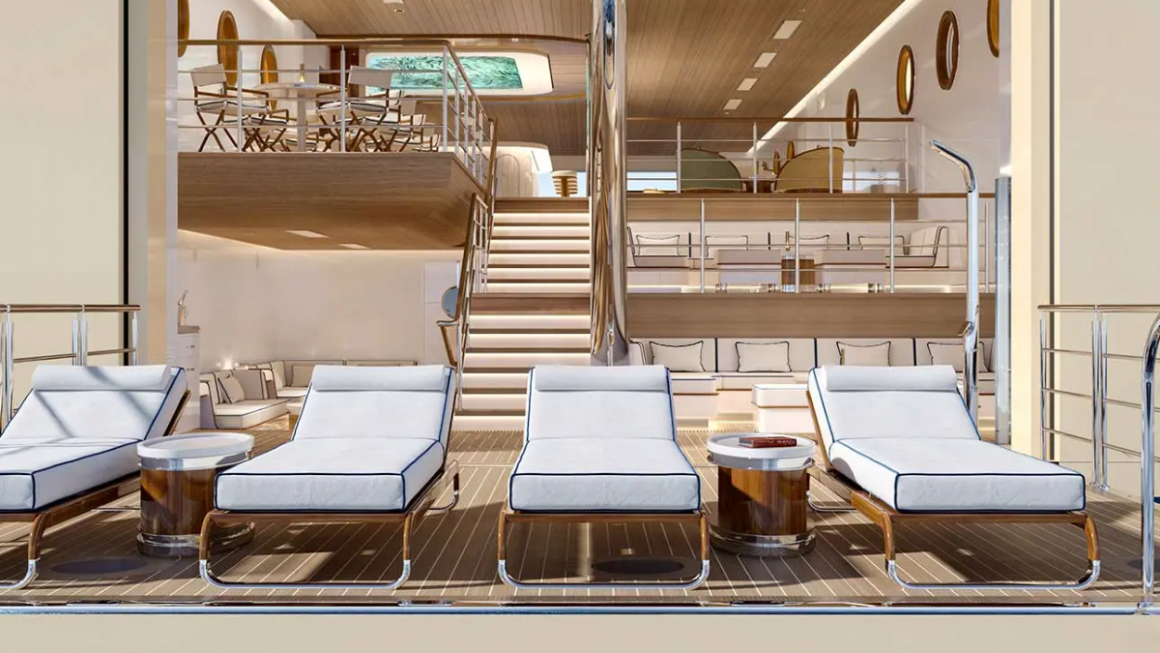 Segundo a companhia, o projeto arquitetônico do navio prioriza a conexão direta com o mar, com grandes terraços e áreas abertas distribuídas ao longo da embarcação. A proposta é aproximar o conceito de iate particular à experiência de um cruzeiro de luxo.