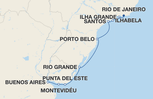 Roteiro: Ilha Grande, Ilhabela, Santos, Porto Belo, Rio Grande, Punta del Este e Montevidéu