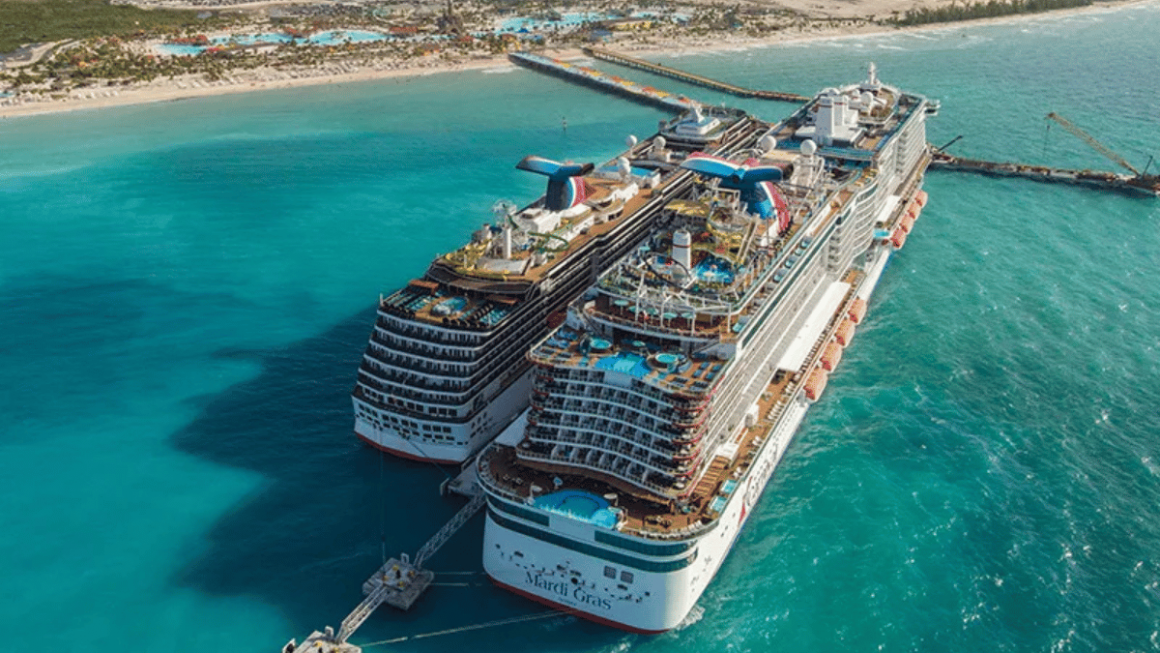 O Mardi Gras, navio da Classe Excel, chegou hoje a Celebration Key, em Grand Bahama, e entrou para a história como o maior navio de cruzeiro a visitar o novo destino privativo da Carnival Cruise Line. A escala faz parte de um roteiro de sete noites pelo Caribe Oriental, que partiu de Port Canaveral e incluiu paradas em Amber Cove, Grand Turk e Nassau antes de seguir para o recém‑inaugurado porto bahamense. A embarcação tem 183,9 mil toneladas de arqueação bruta e capacidade para 6.619 hóspedes, atracou às 8h (horário local) para uma estadia de nove horas.