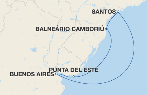 Entre os destinos mais frequentes estão Búzios, Ilha Grande, Buenos Aires, Punta del Este, Salvador, Maceió, Balneário Camboriú, Santos e outros. Além de integrarem os roteiros como escalas, Santos, Balneário Camboriú, Maceió e Salvador também se destacam como importantes portos de embarque e desembarque de viajantes.