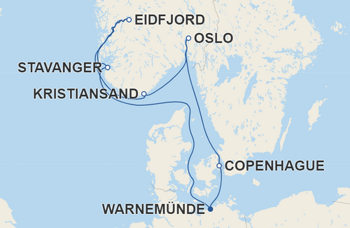 Roteiro: Stavanger, Eidfjord, Kristiansand, Oslo, Copenhague