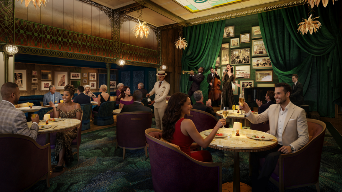 Ao todo, serão 28 opções gastronômicas a bordo. Entre elas, o Orleans Parish Supper Club, que une culinária inspirada em Nova Orleans a apresentações de jazz ao vivo, e o Royal Railway, uma experiência que simula viagens de trem com ambientação tecnológica e menus temáticos.