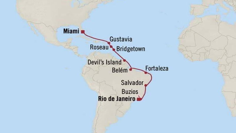 Um cruzeiro com 54 dias de duração acontece entre 29 de novembro de 2025 e 22 de janeiro de 2026 a bordo do navio Marina. Começa em Miami, nos Estados Unidos – e, antes de descer para a América do Sul, passa pelo México, visitando Cozumel e Costa Maya. Então, cruza o Canal do Panamá e desce toda a costa pacífica do continente, até alcançar a Antártica. Sobre então pelo lado Atlântico, até desembarcar no Rio de Janeiro.