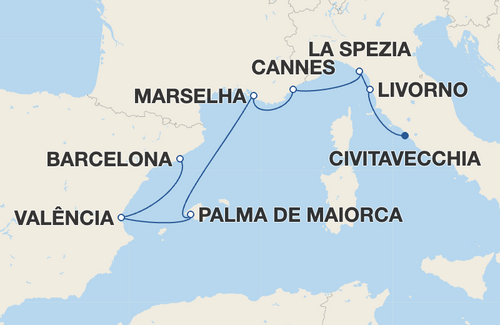 Roteiro: Livorno, La Spezia, Cannes, Marselha, Palma de Maiorca, Valência