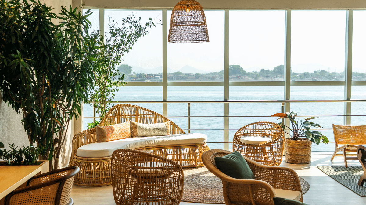 O conceito arquitetônico da sala VIP tem como base a tradição indonésia balinesa, reconhecida mundialmente por sua conexão com a natureza, espiritualidade e equilíbrio entre corpo e mente. Essa base cultural dialoga com o estilo Boho Chic, que se caracteriza pelo uso equilibrado de materiais naturais e sustentáveis, paleta de cores neutras, texturas suaves e uma estética orgânica, complementada por elementos contemporâneos inseridos de forma pontual e cuidadosa. O resultado é um espaço visualmente leve, acolhedor e atemporal.