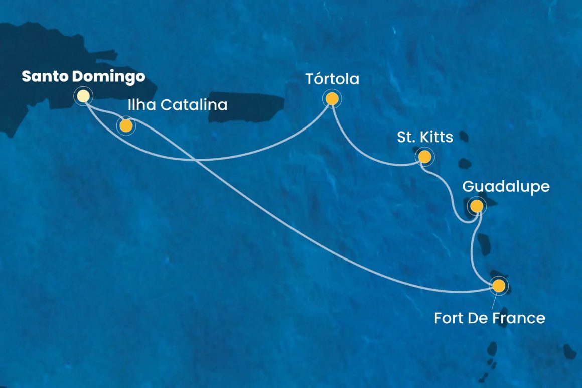 Os cruzeiros de 8 a 16 dias têm escalas em uma combinação de portos na República Dominicana, Ilhas Virgens Britânicas, Barbados, Dominica, São Cristóvão e Nevis, São Vicente e Granadinas.