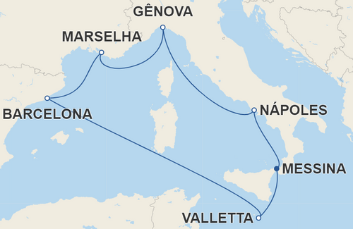 Roteiro: Valletta, Barcelona, Marselha, Gênova e Nápoles