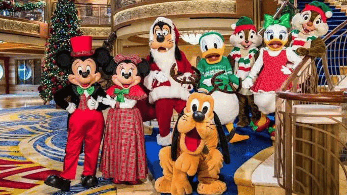 A magia do fim de ano ganha vida em alto-mar com uma atmosfera especial que combina decoração, atividades e muito entretenimento. Árvores iluminadas, guirlandas, poinsétias e luzes piscando criam o clima festivo perfeito para toda a família. Entre os destaques está a tradicional cerimônia de iluminação da árvore, conduzida por Mickey e Minnie, além do animado Mickey and Minnie’s Holiday Party, que transforma os decks em palco de música, amizade e celebração. Os personagens da Disney aparecem em trajes natalinos para fotos inesquecíveis, enquanto o Papai Noel surge a bordo para ouvir os pedidos de Natal.